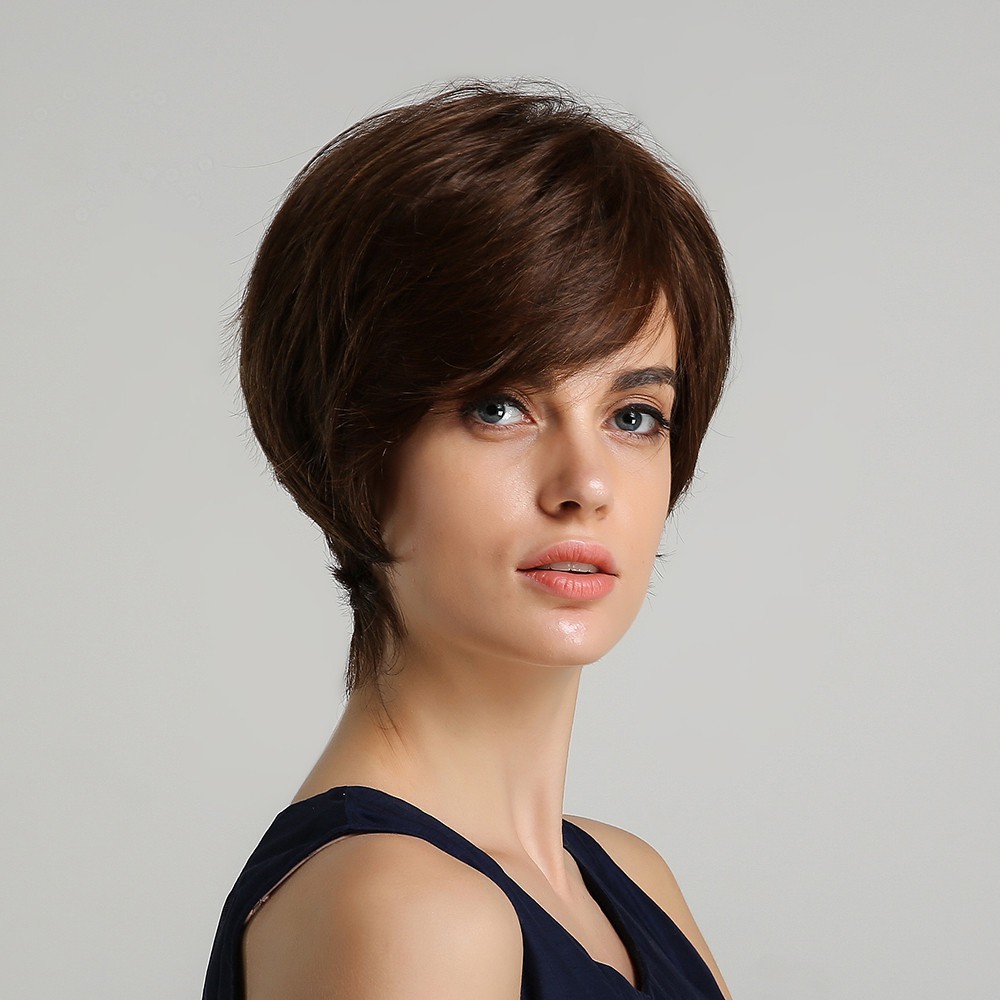 Magnificent Pixie Cut Wig Natural Straight Hair Mixed Color Wig