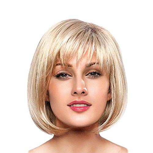 Blonde Unicorn Lady Girl Bob Wig Short Straight Bangs Full Hair
