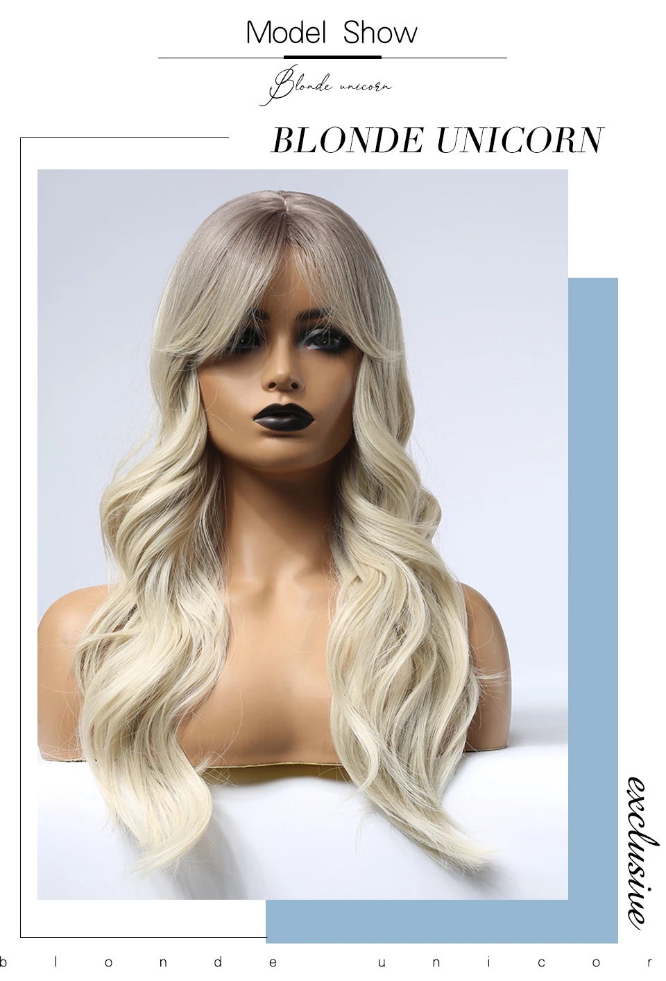 Blonde Unicorn Wavy Human Hair Wigs With Bangs For Women Long