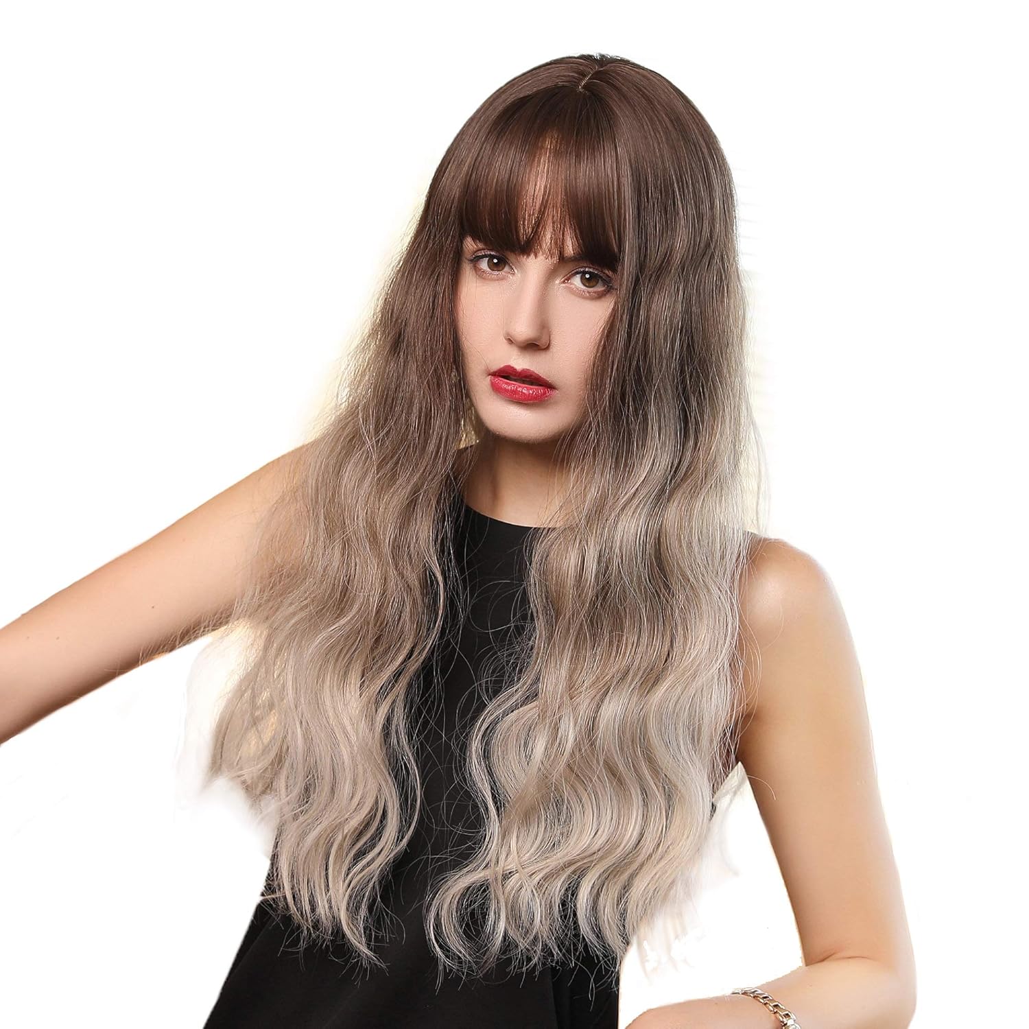 Blonde Unicorn 20 Inch Long Wavy Hair Wig With Bangs Light Brown