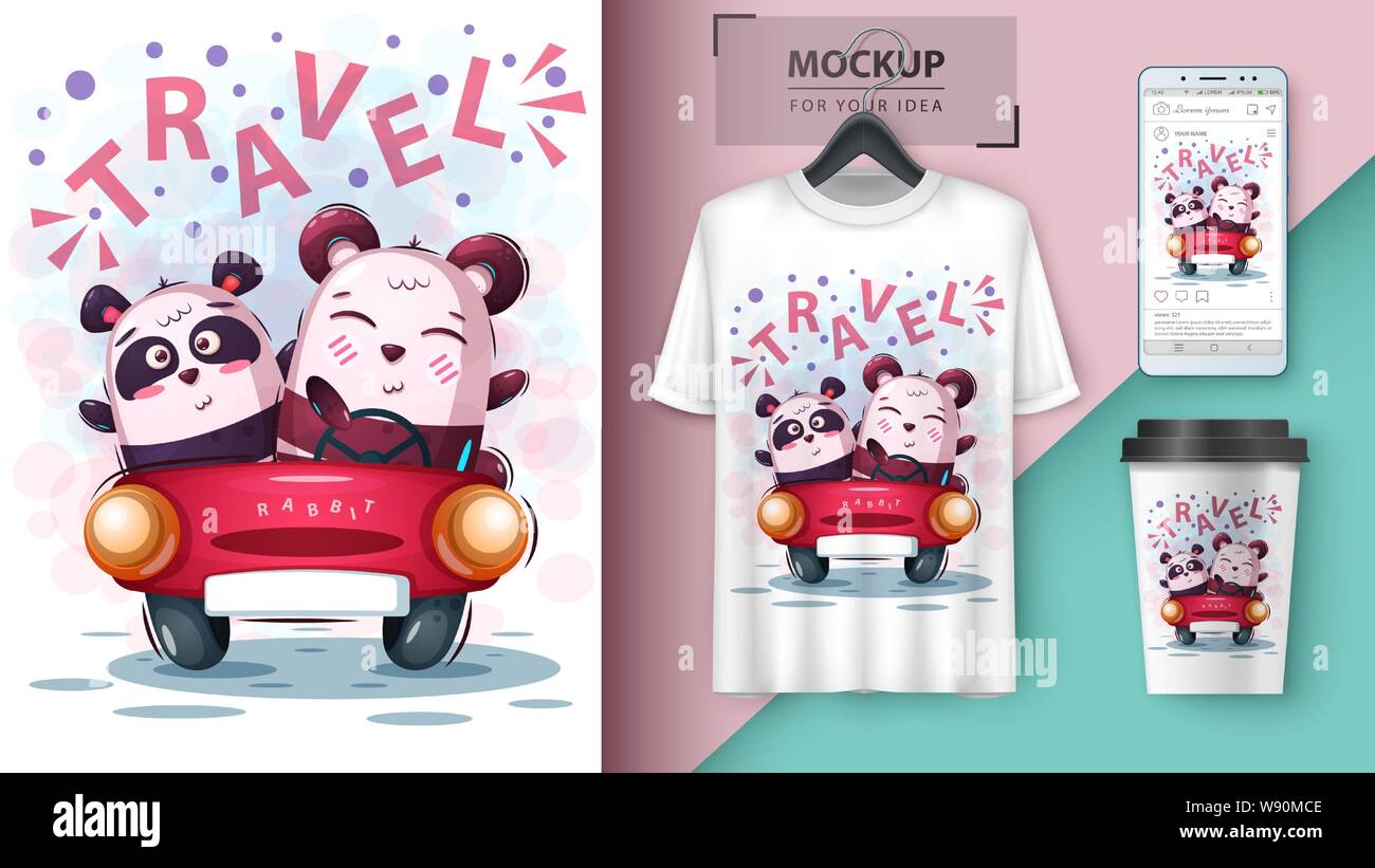 Cute Bear And Panda Unicorn Poster And Merchandising Stock Vector