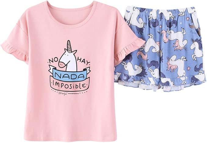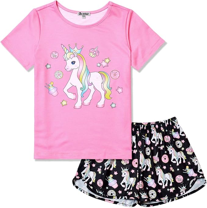 Kid Girls Big Girls Cute Unicorn Short Sleeves Summer Pajamas Set Casual Sleepwear Pink C318e7nsc3z