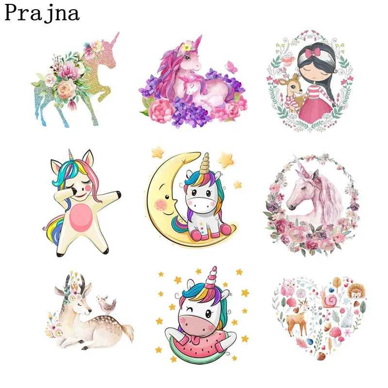 Prajna Unicorn Cartoon Iron On Transfers Cute Anime Stripe On Clothes Ironing Stickers For Kids Clothing Diy