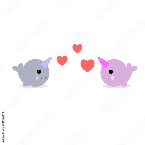 Cute Cartoon Anime Narwhal Romance Cards Posters With Funny