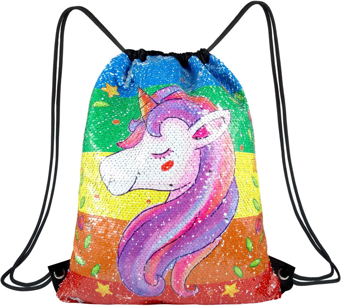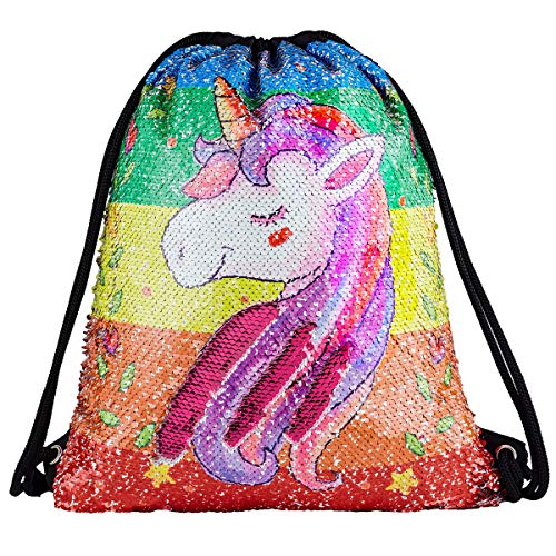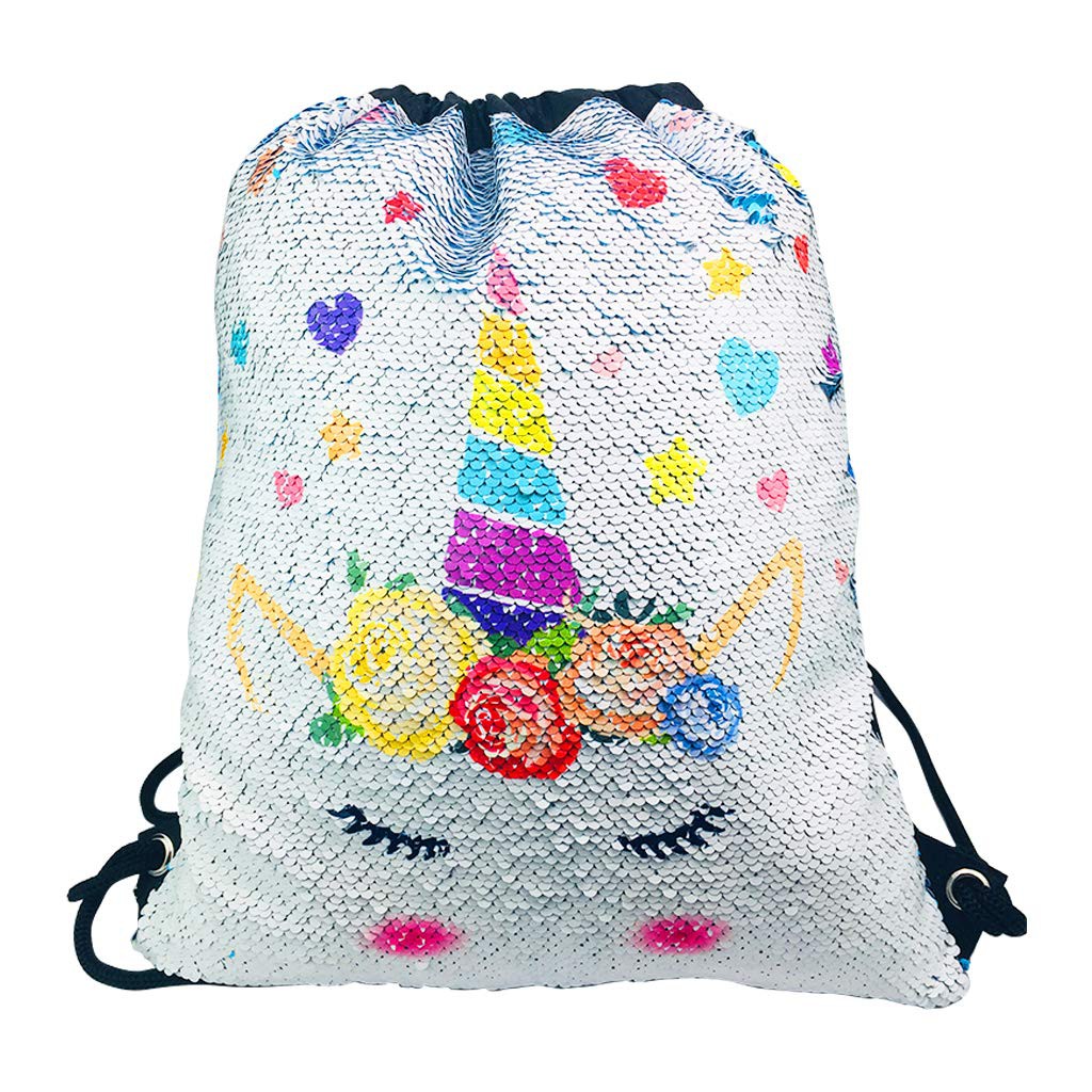 Rainleaf Unicorn Sequin Bag Drawstring Backpack Dance Bag Gym Sack
