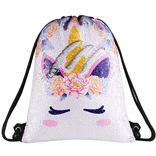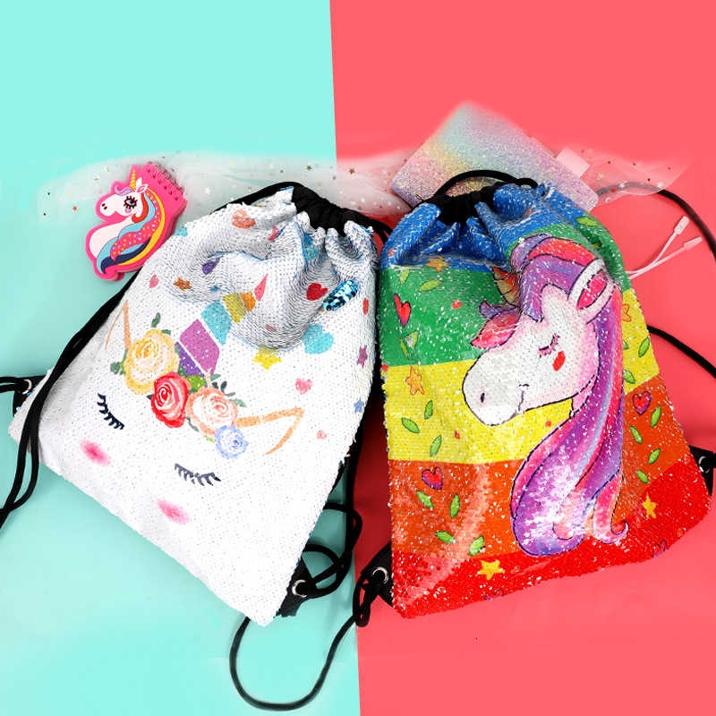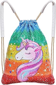 Nssonben Unicorn Sports Bag Sequin Drawstring Bag For Girls