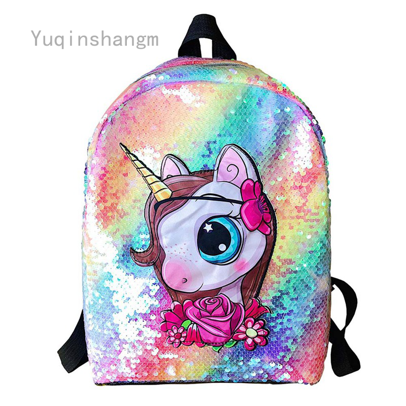 Yuqinshangm Unicorn Sequins Versatile Music Light Backpack Unicorn