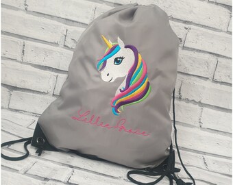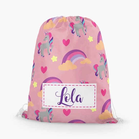 Personalised Unicorn Drawstring Bag Girls Kids Pe Bag Swimming Etsy