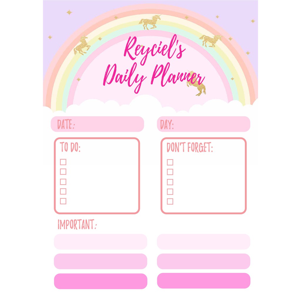 Instant Download Printable Daily Planner Unicorn Theme Kids