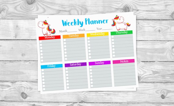 Personalised Unicorn Weekly Planner Children S Routine Etsy