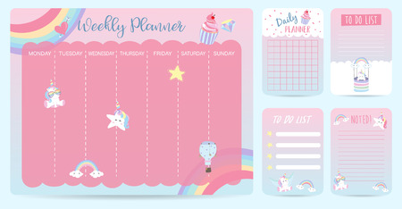 Cute Lovely Vector Weekly Planner Template Unicorns Stationery
