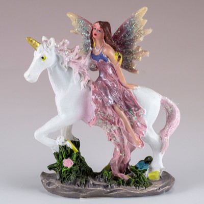 Mini Pink Fairy With Unicorn Figurine 2 High Resin New