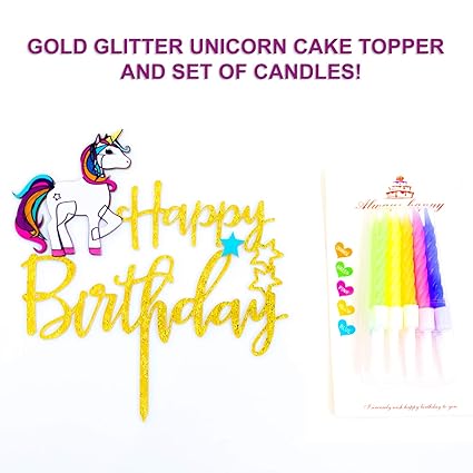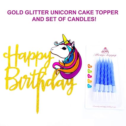 Unicorn Cake Topper Happy Birthday Candle Let S Glow Party Cake