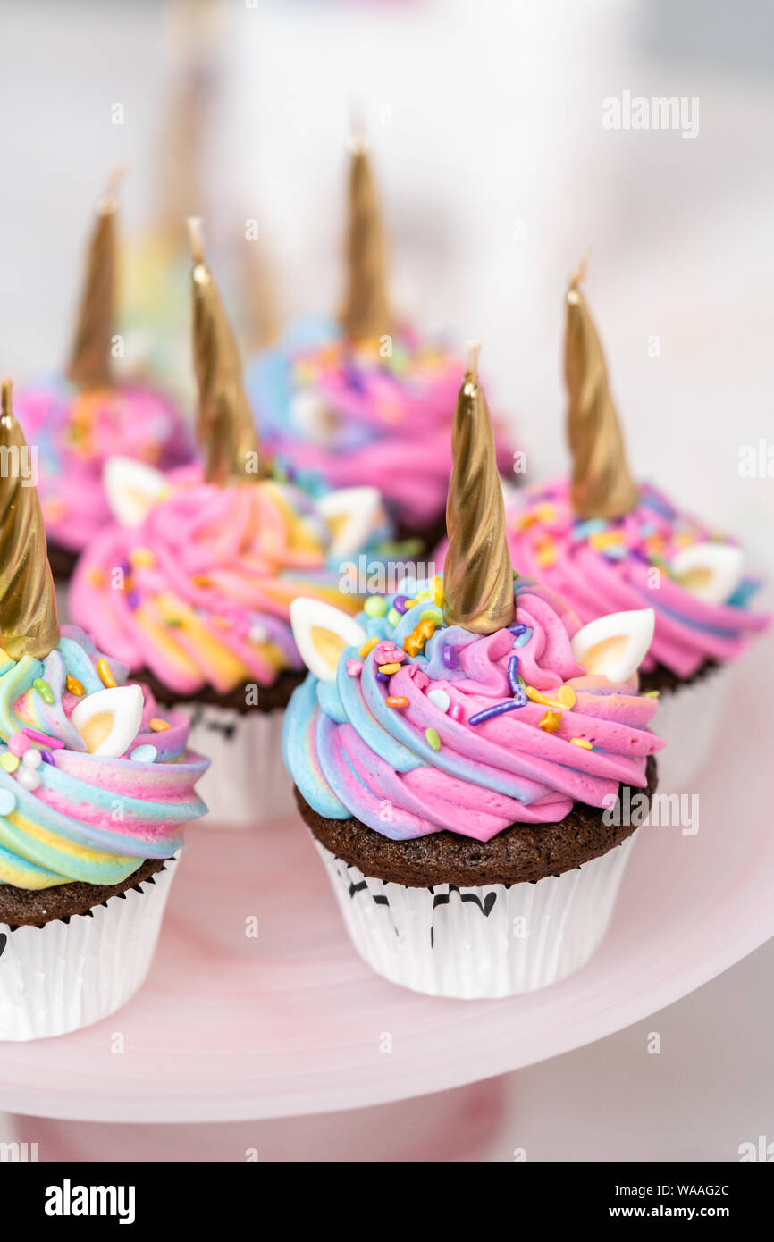 Unicorn Cupcakes Decorated With Colorful Buttercream Icing And