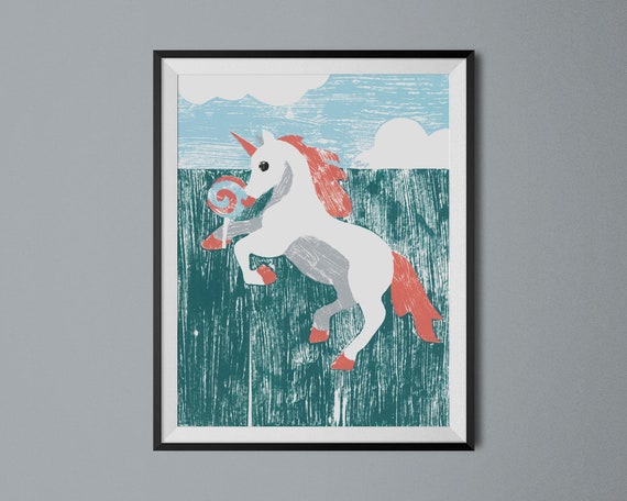 Sweet Unicorn Print Whimsical Animal Art Etsy
