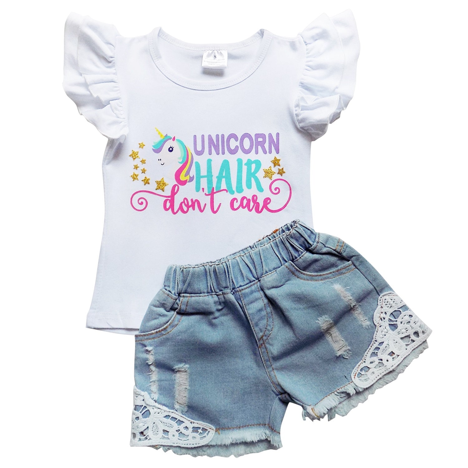 Unicorn Hair 2 Piece Denim Shorts T Shirt Top Set So Etsy