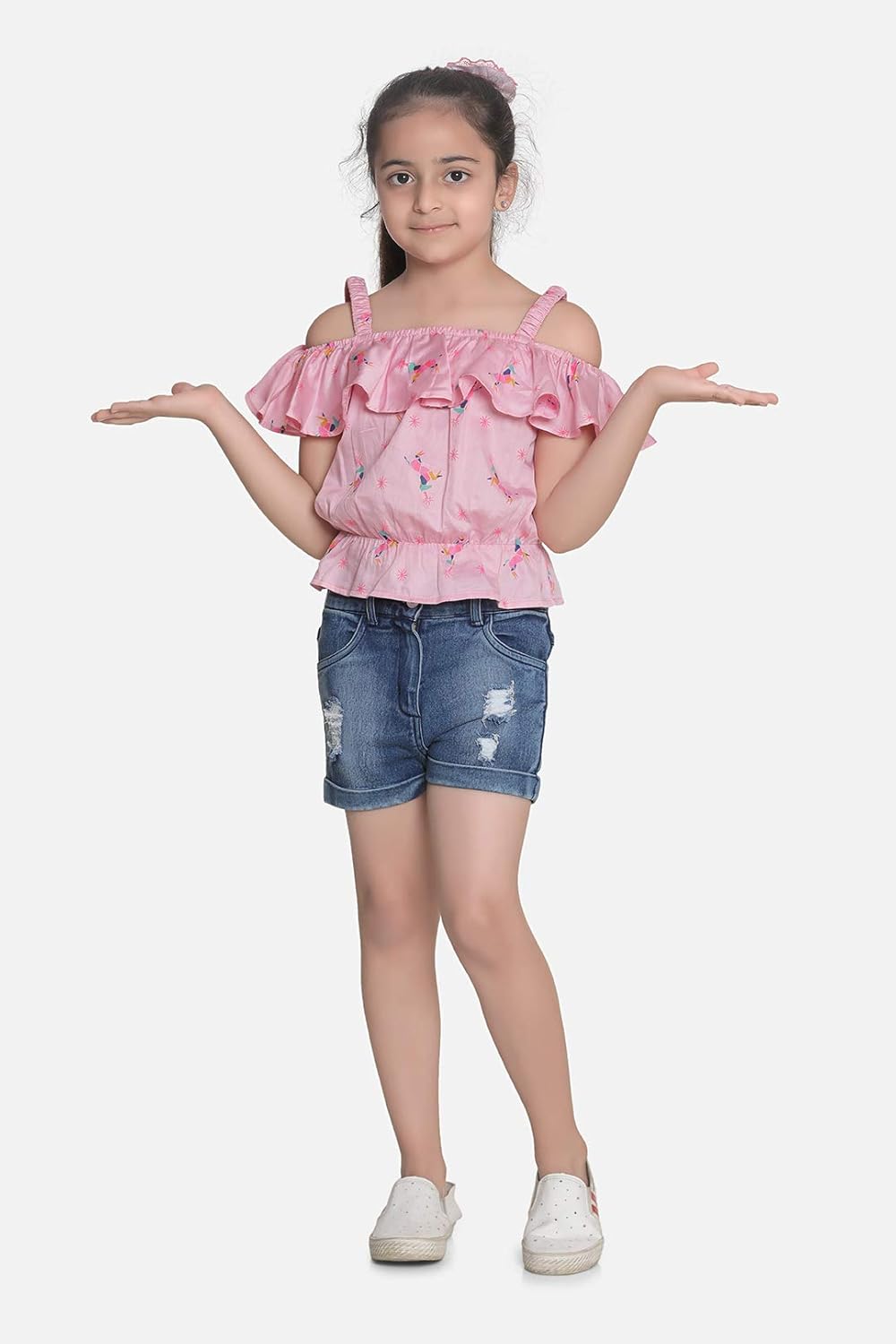 Squeeze Blue Frayed Hem Denim Shorts Unicorn Hair Tie Girls