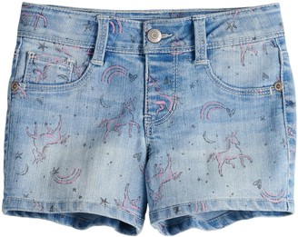 Girls Unicorn Print Denim Skimmer Shorts