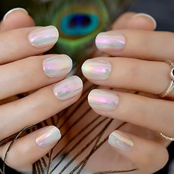24pcs Unicorn Chrome Press On Fake Nails With Designs Iridescent