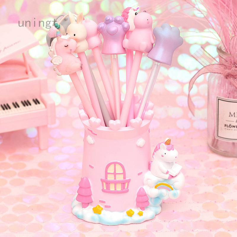 Ready Stock Unicorn Pen Holder Girls Cartoon Unicorn Resin Pencil