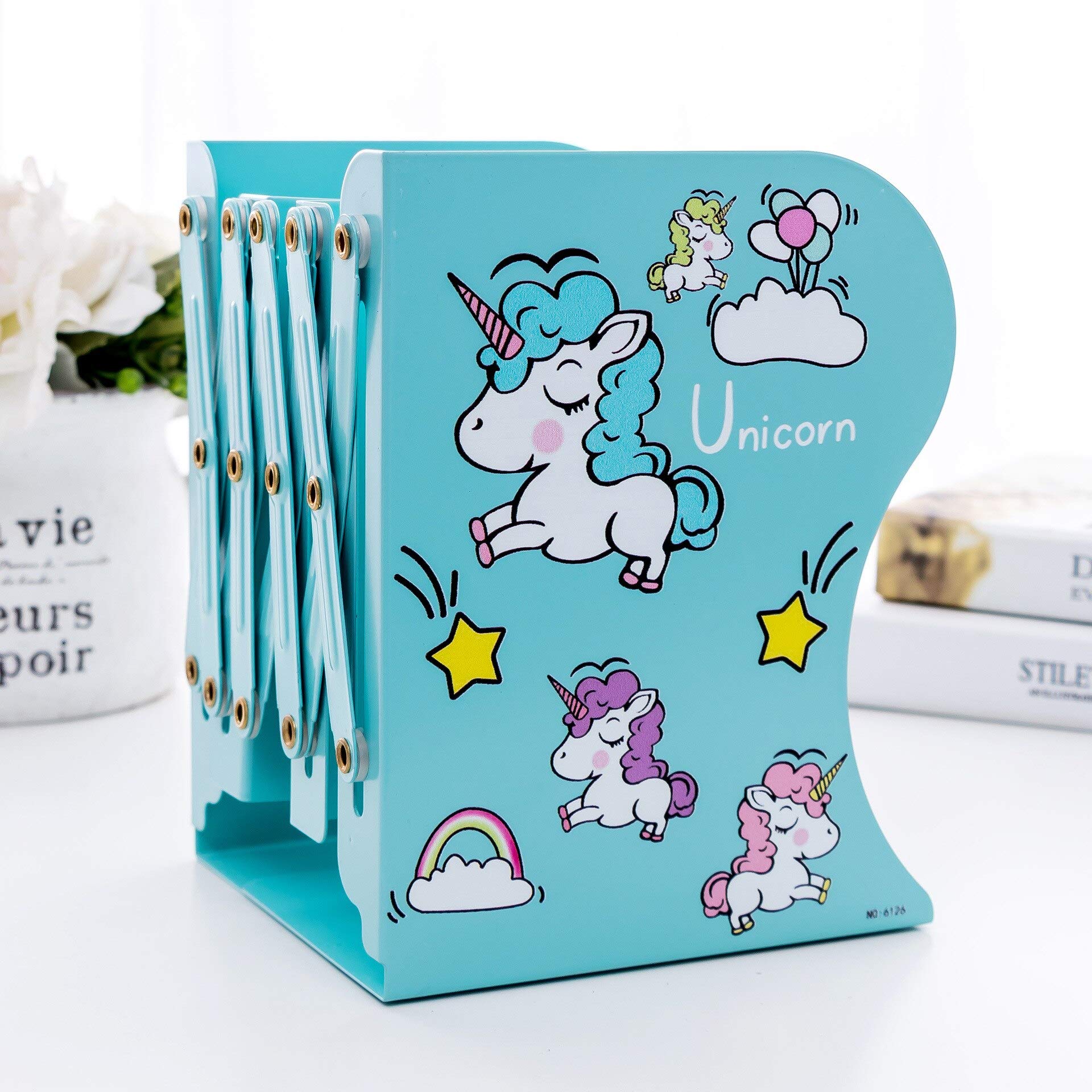 1pc Kawaii Unicorn Metal Desk Book Holder Retractable Bookends