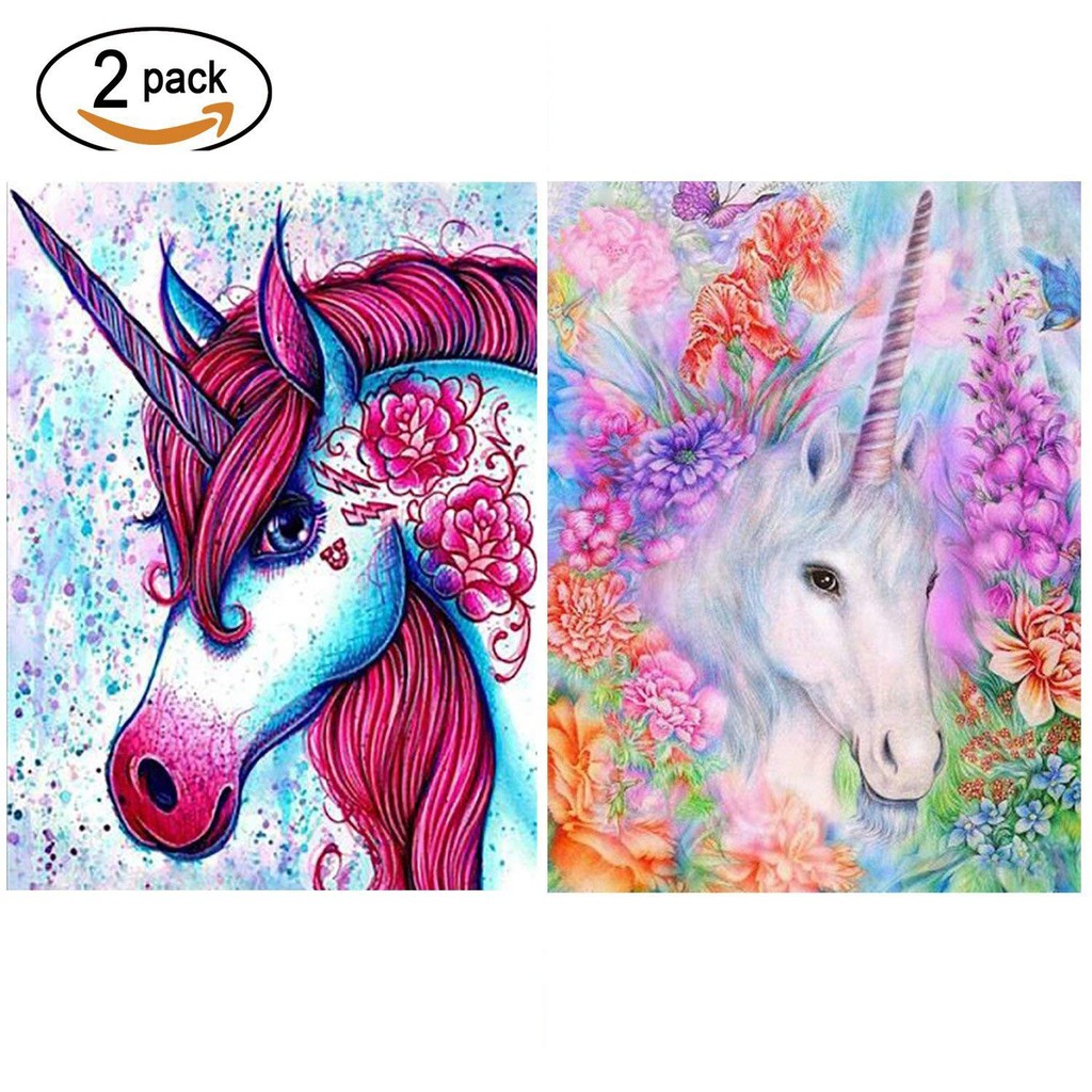 2 Packs 5d Diy Unicorn Diamond Painting Set Full Drill Diamond