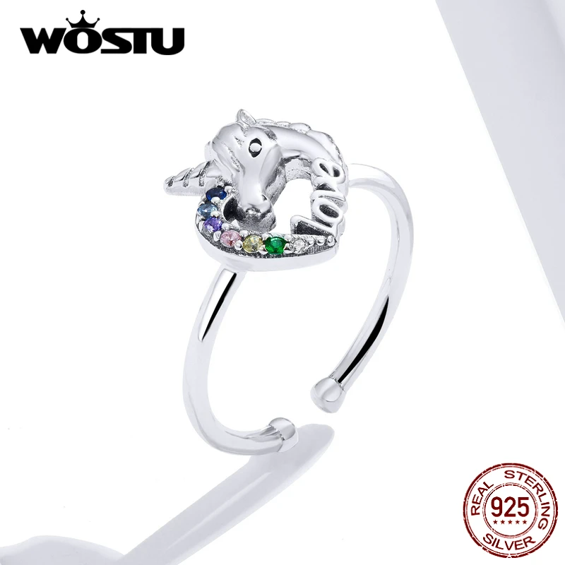 Wostu Fancy Unicorn Open Rings 100 925 Sterling Silver Adjustable