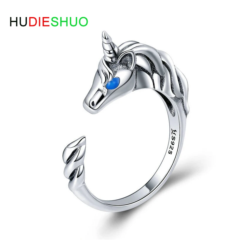 Hudieshuo Unicorn Ring Fashion Adjustable Size 925 Sterlingsilver