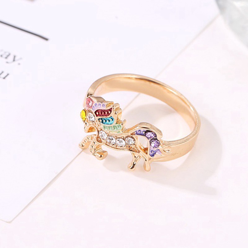 Fashion Rainbow Unicorn Ring Silver Gold Color Engagement Animal