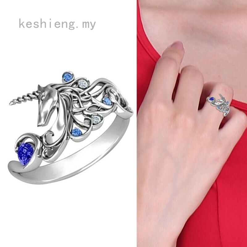 Keshieng New Creative Unicorn Diamond Ring Elegant Unique Sapphire
