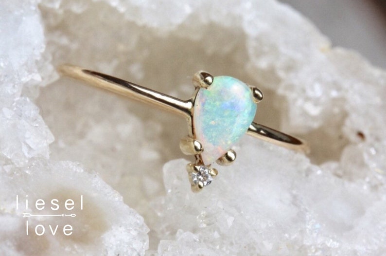 14k Gold Pear Opal Diamond Ring Unicorn Tears Etsy