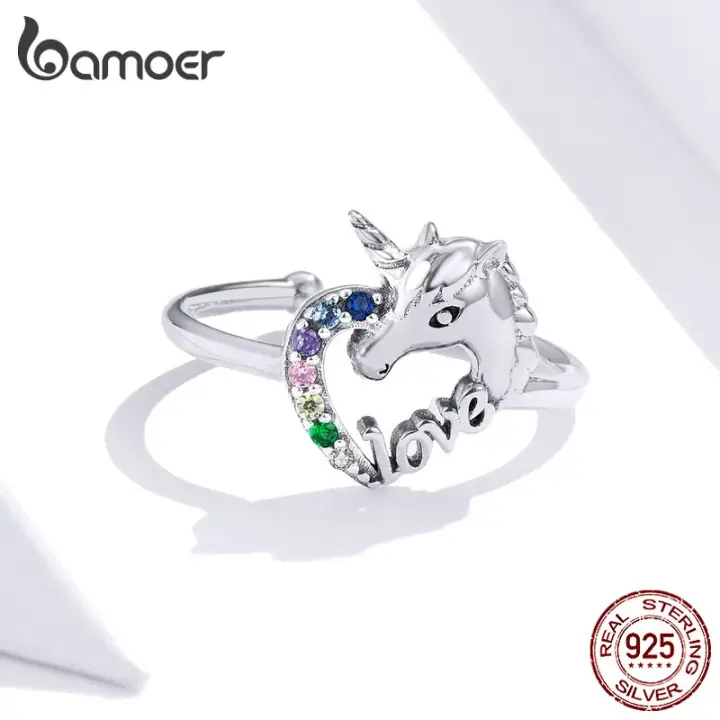 Bamoer Fantesy Colorful Unicorn Finger Rings 925 Sterling Silver