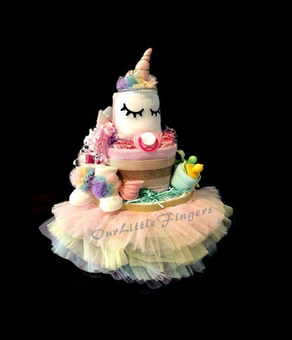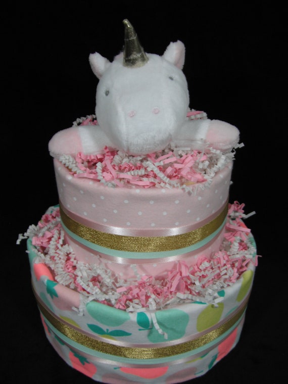 Adorable 2 Tier Baby Girl Unicorn Diaper Cake With Plush Etsy