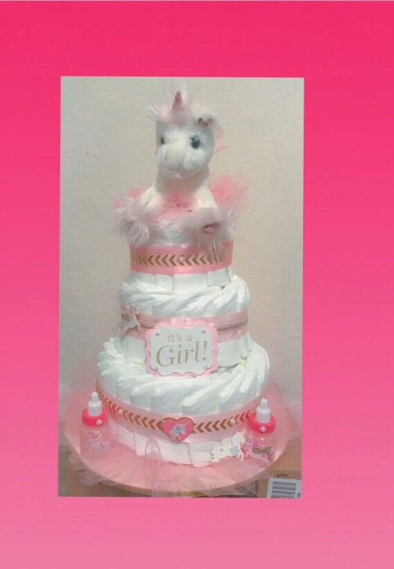 Unicorn Diaper Cake Girl Baby Shower Gift Pink Diaper Cake Etsy