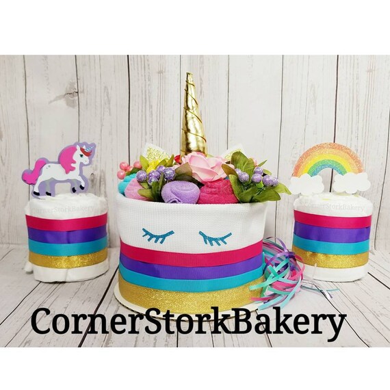 Unicorn Diaper Cake Unicorn Baby Shower Centerpieces Unicorn Etsy