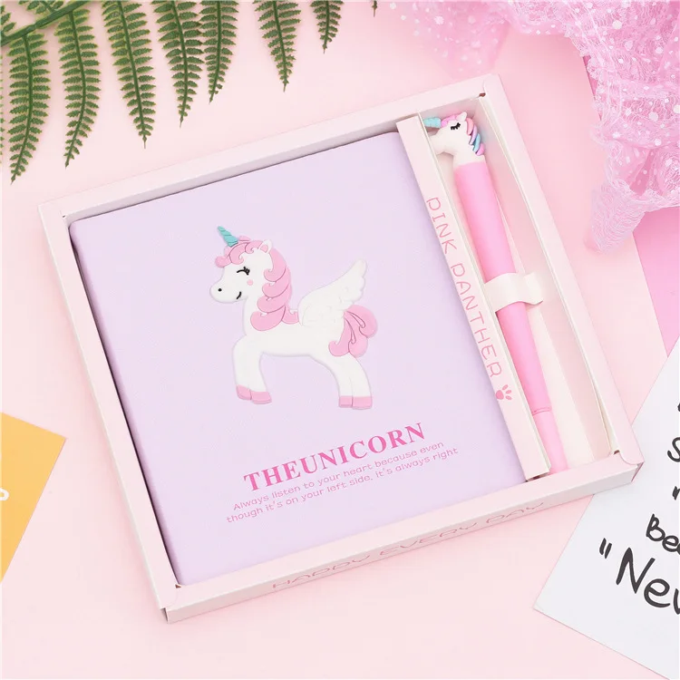 1 Set Pink Unicorn Cute Notebook Gift Pack Hard Cover Diary