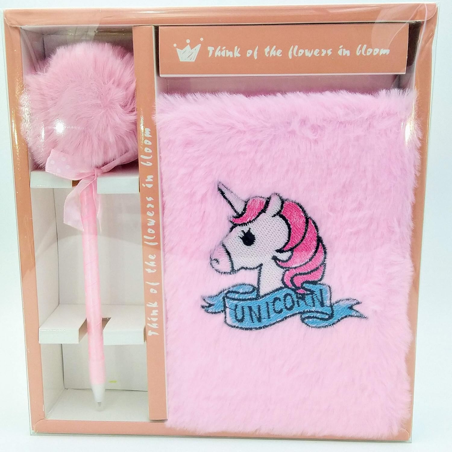 Hot Pink Fluffy Unicorn Diary Set For Girls With Magic Pen