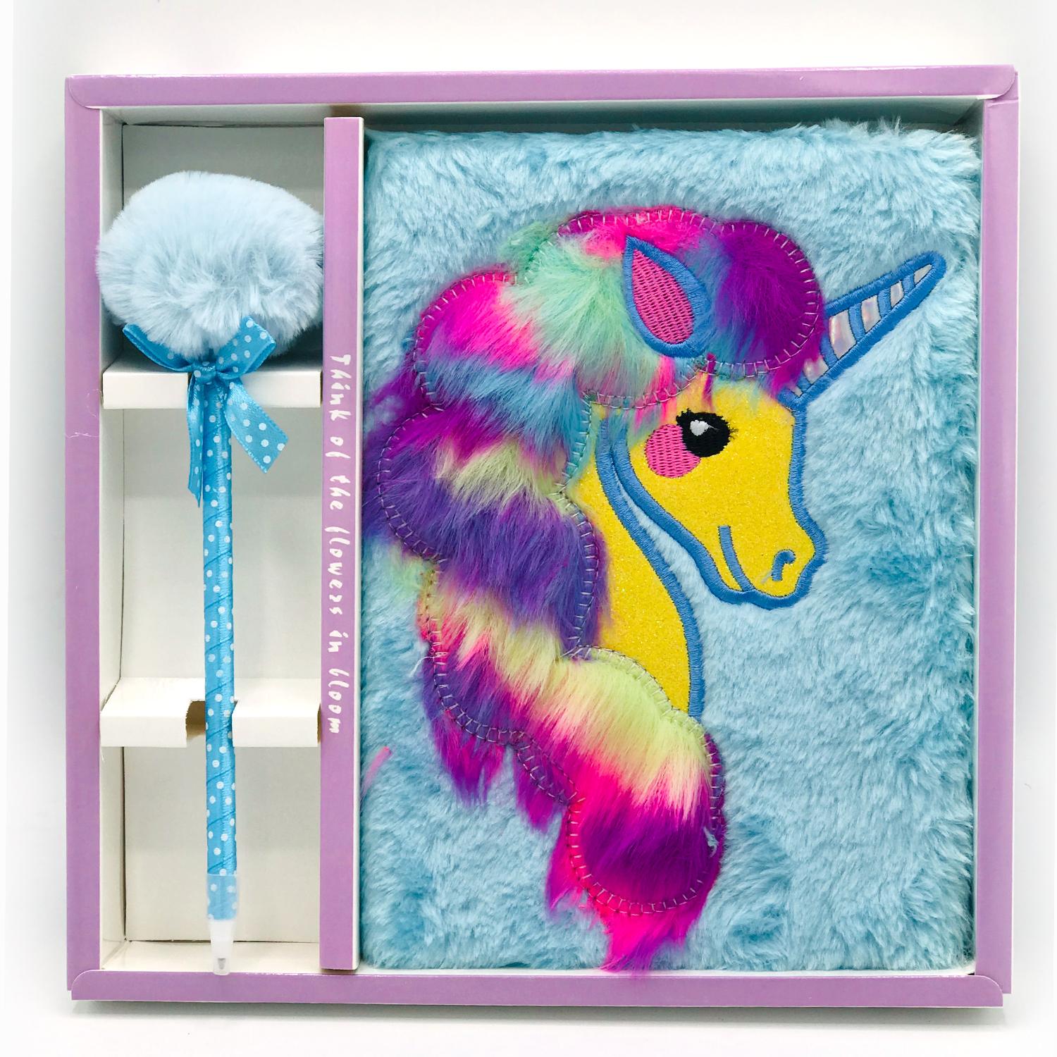 Unicorn Faux Fur Notebook Pom Pom Pen Unicorn Gifts Unicorn