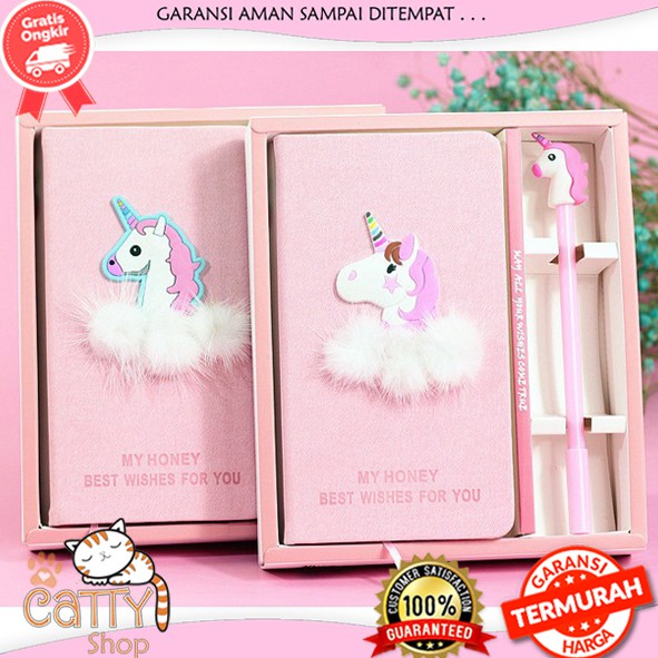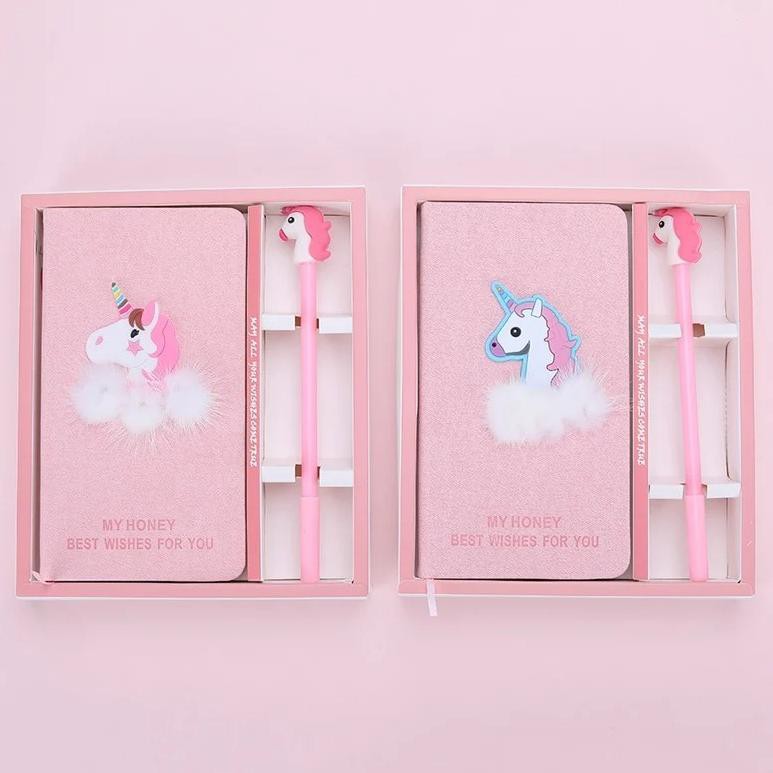 Set Note Book Unicorn Buku Diary Pony Pen Stempel Kado Unik Lucu