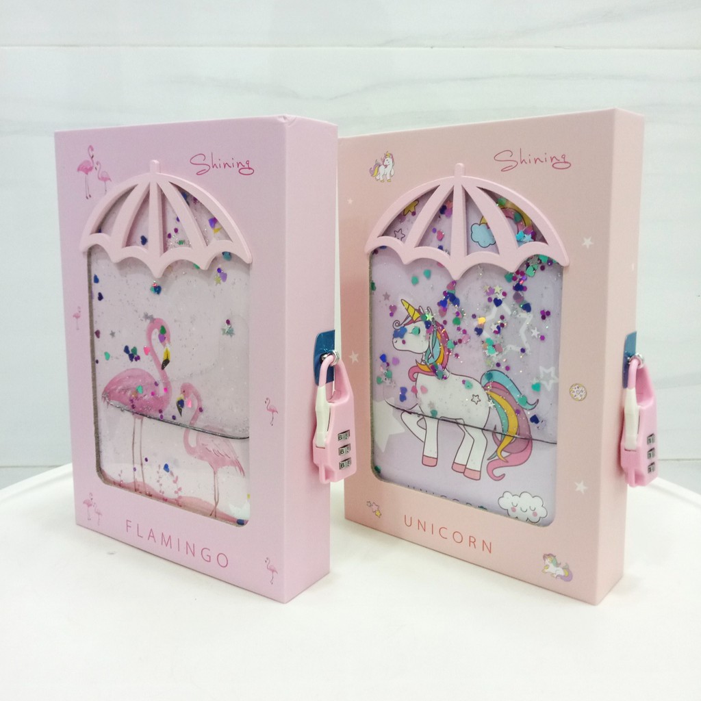 Buku Diary Notebook Tulis Air Glitter Manik Unicorn Flamingo A