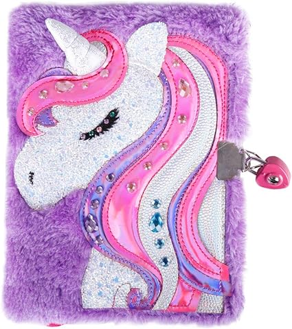 Unicorn Journal Or Diary With Lock And Key And Fuzzy Pen Books