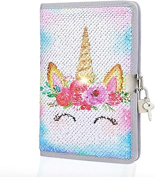 Amazon Com Poitemsic Unicorn Sequin Diary With Lock And Key