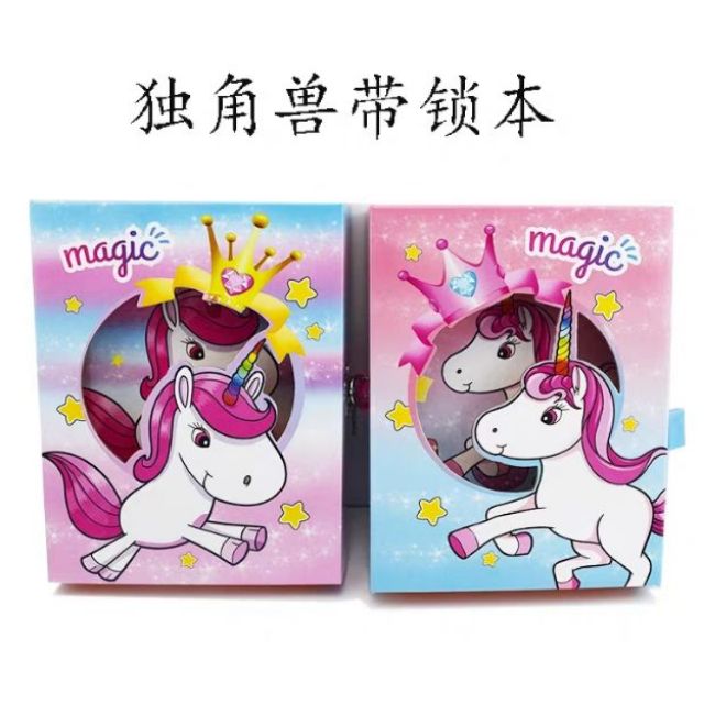 Cartoon Unicorn Diary With Lock Notebook Gift Box Package Shopee