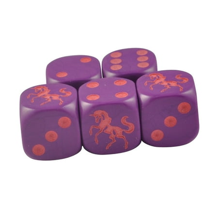 Azty Solutions Set Of 5 Purple Unicorn Dice Round Corner Opaque