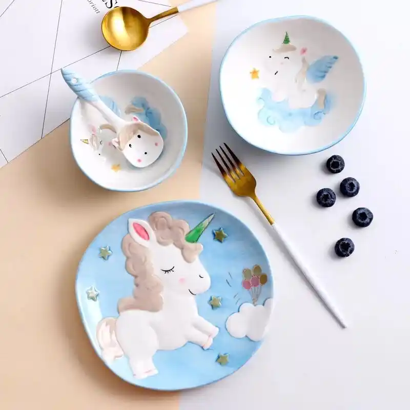 1pc Unicorn Ceramic Dinner Bowl Dish Plates Baking Tray Porcelain