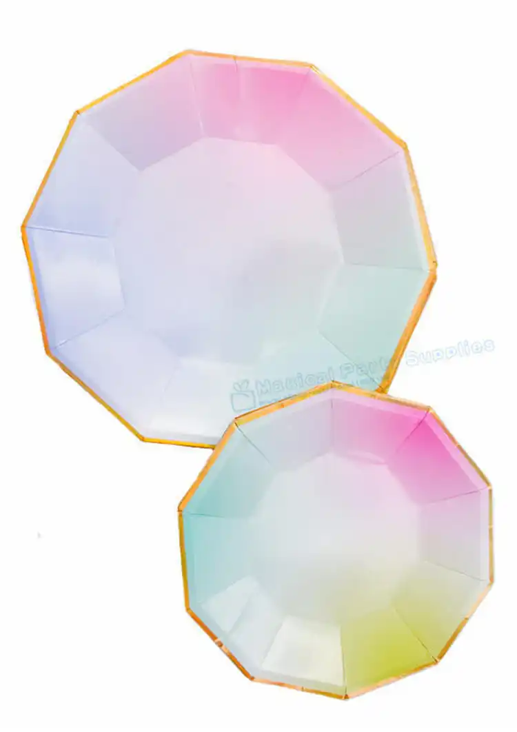 80pcs Party Plates Pastel Rainbow With Gold Dinner Plates Dishes