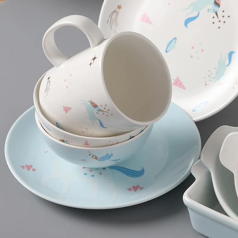 Creative Ceramic Dinnerware Sets Cute Cartoon Unicorn Porcelain