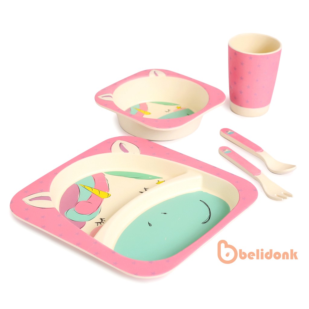 Ez Life Pack Of 5 Bamboo 5 Piece Kids Meal Set Happy Unicorn