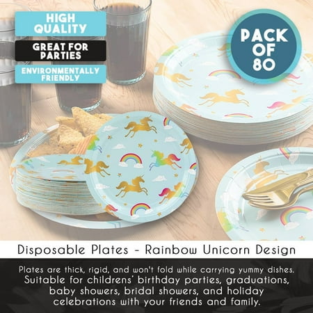 Disposable Plates 80 Count Paper Plates Rainbow Unicorn Party