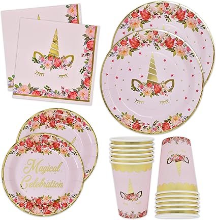 Amazon Com Unicorn Plates Napkins And Cups With Gold Foil Serves